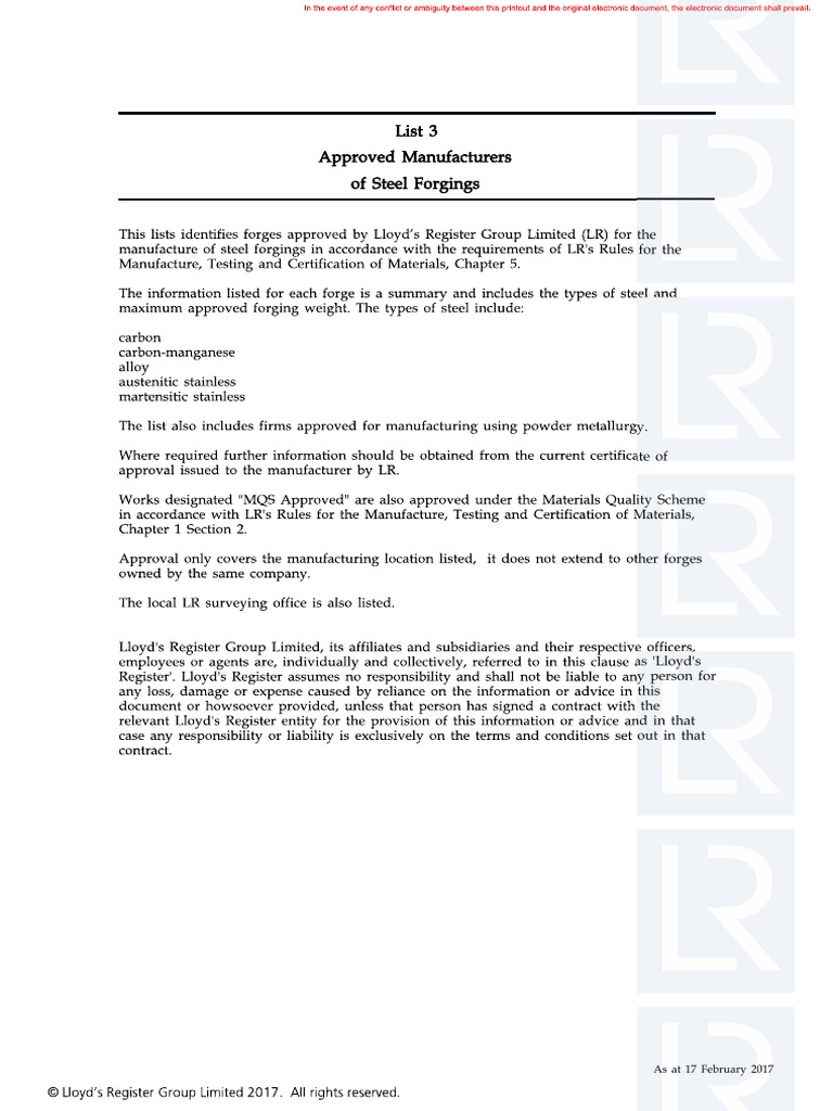 Application Name: Lloyds Approved Manufacturer Forgings