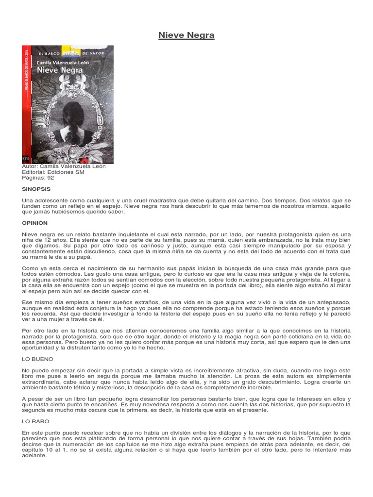 Nieve negra el nuevo libro de camila valenzuela esta historia desde un inicio puede causar cierto ruido a blanca nieves pero no jajaja de hecho solo tiene un clic del clasico cuento el libro de por si es bastante corto y recomendado a partir de los 12 anos pero te atrapa como las mejores novelas. Erase una vez don quijote. 58 58 voto positivo 23 23 votos negativos. Nieve negra el nuevo libro de camila valenzuela esta historia desde un inicio puede causar cierto ruido a blanca nieves pero no jajaja de hecho solo tiene un clic del clasico cuento el libro de por si es bastante corto y recomendado a partir de los 12 anos pero te atrapa como las mejores novelas.